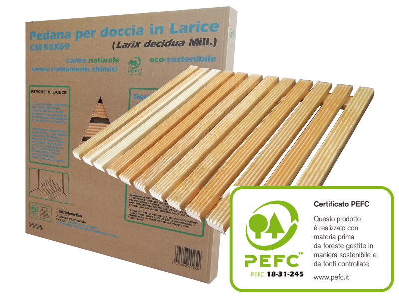 You are currently viewing Castelmerlino - Bathroom range - Wood Shower Tray - PEFC Certified Larch footboards - Article 132 environmentally sustainable footboard made size 55x69.