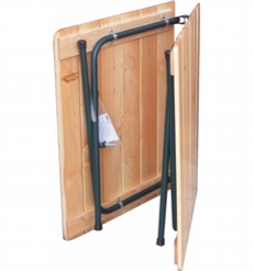 Double-sized tables in a convenient size for 6-8 people. The closing system is practical and fast. Table 006 140x70cm is the largest of the folding tables. The 120x80 cm size is offered with larch wood and melamine tops. After closing the table its dimensions are halved.